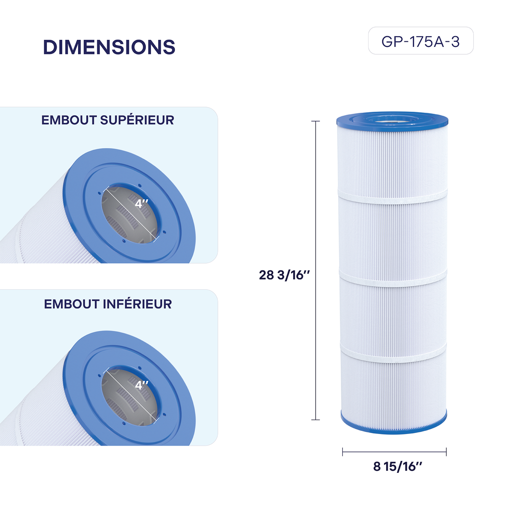 - Cartouches équivalentes : Unicel C-8417, Pleatco PA175, Filbur FC-1294