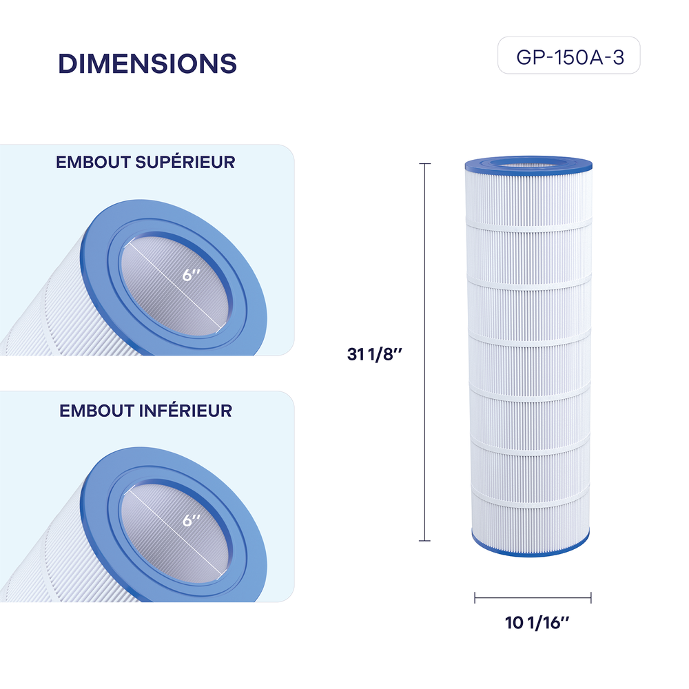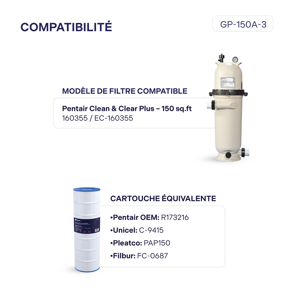 - Cartouches équivalentes : Unicel C-9415, Pleatco PAP150, Filbur FC-0687