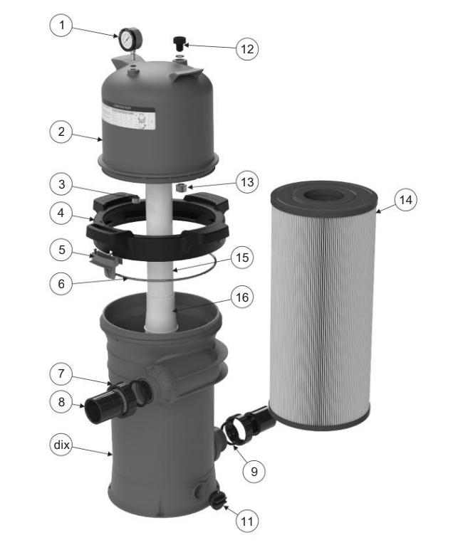 Efficacité de Filtration : Équipé d'une cartouche de haute qualité, ce filtre retient efficacement les impuretés, les particules fines et les débris, assurant ainsi une eau propre et claire pour votre piscine.
