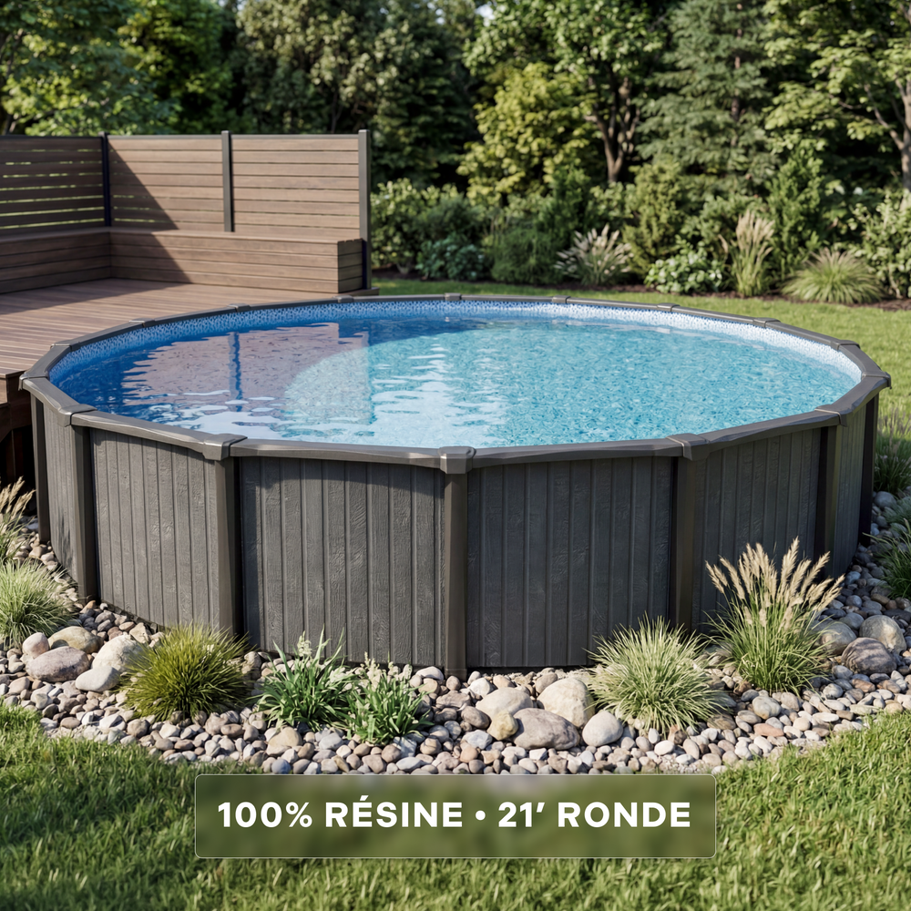 La piscine hors terre Fieldstone se distingue par sa finition inspirée du bois peint, offrant un look naturel et raffiné qui s’harmonise parfaitement avec votre cour arrière. Son design unique apporte une touche chaleureuse tout en conservant une apparence moderne et haut de gamme.