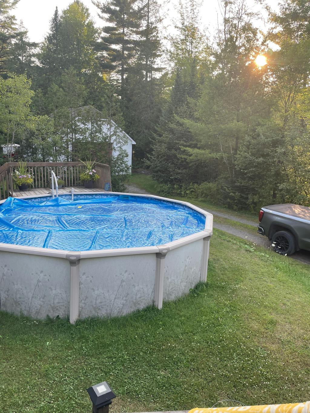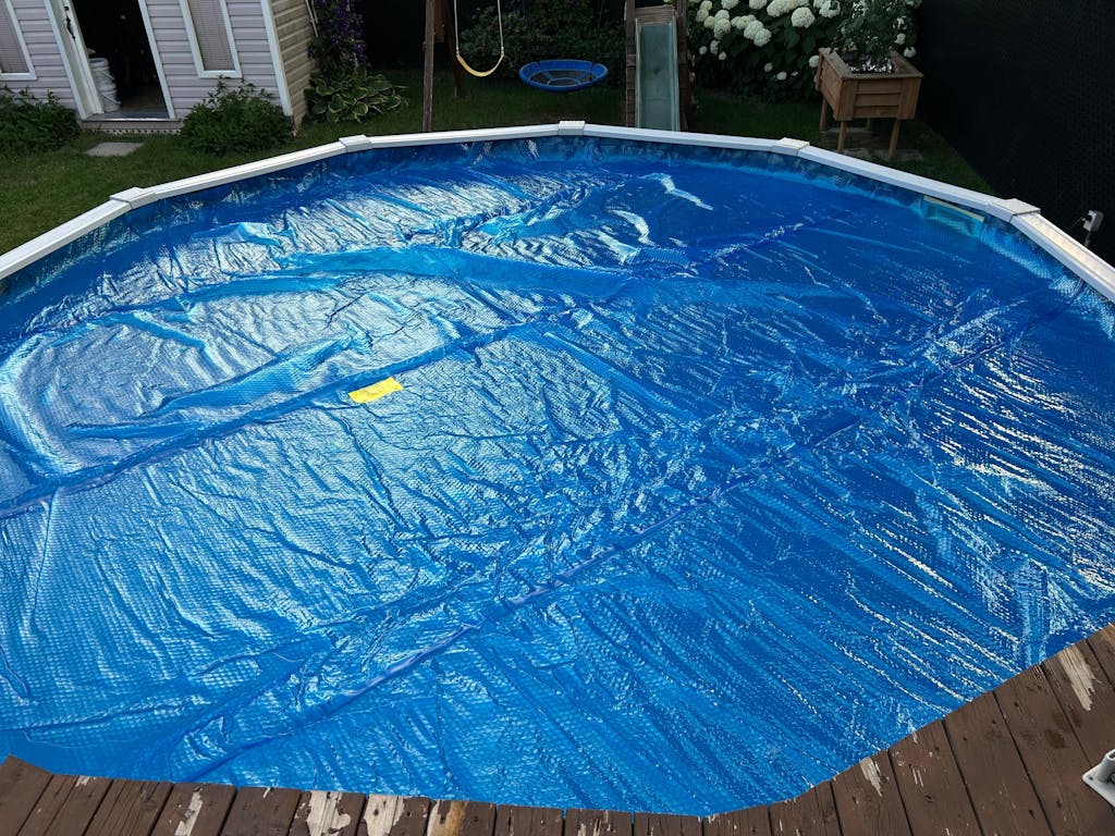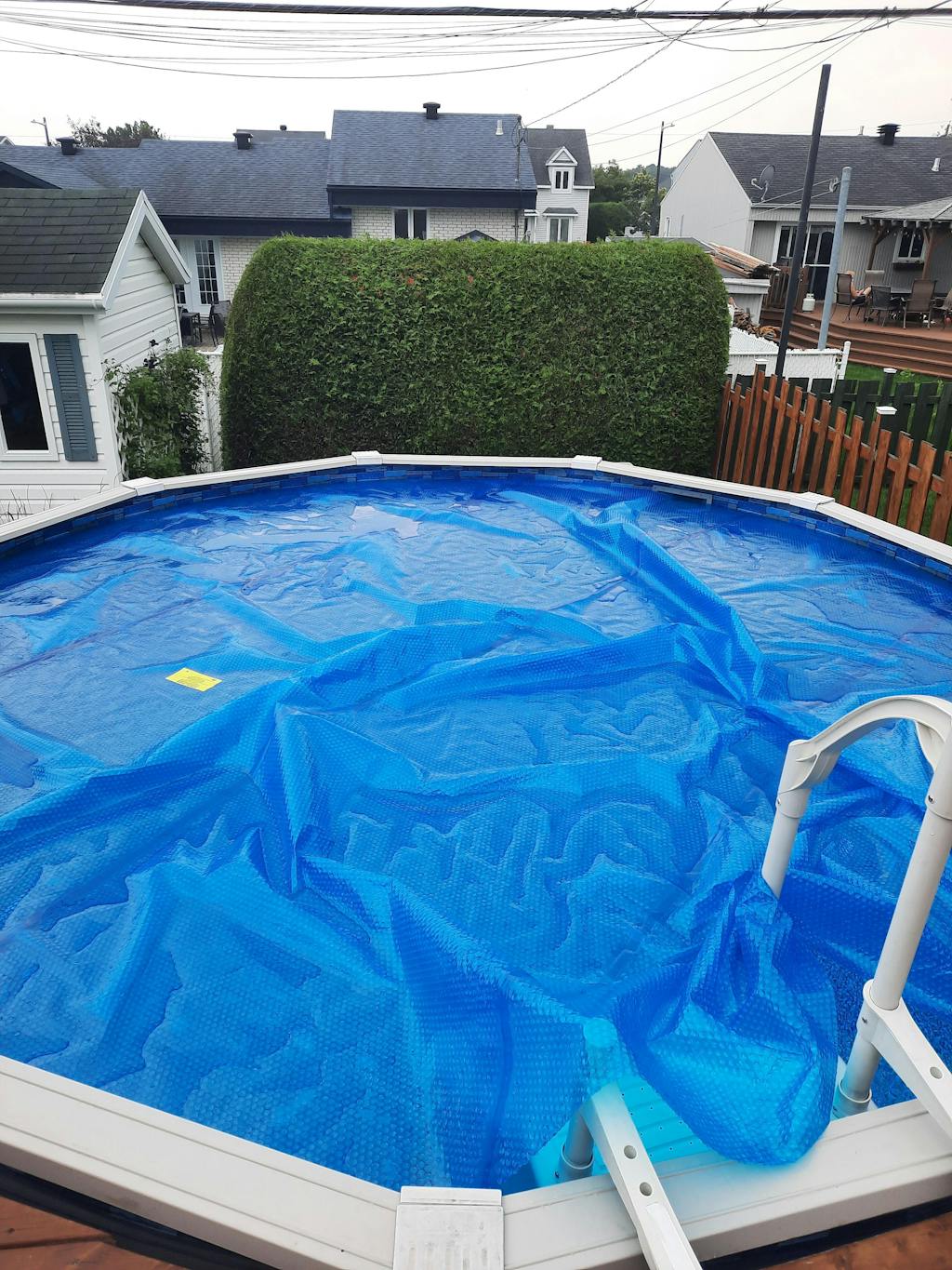 Forme: Ronde Dimension: 30' Épaisseur: 7 mil Matériau: Polyéthylène, résistant au chlore et aux UV